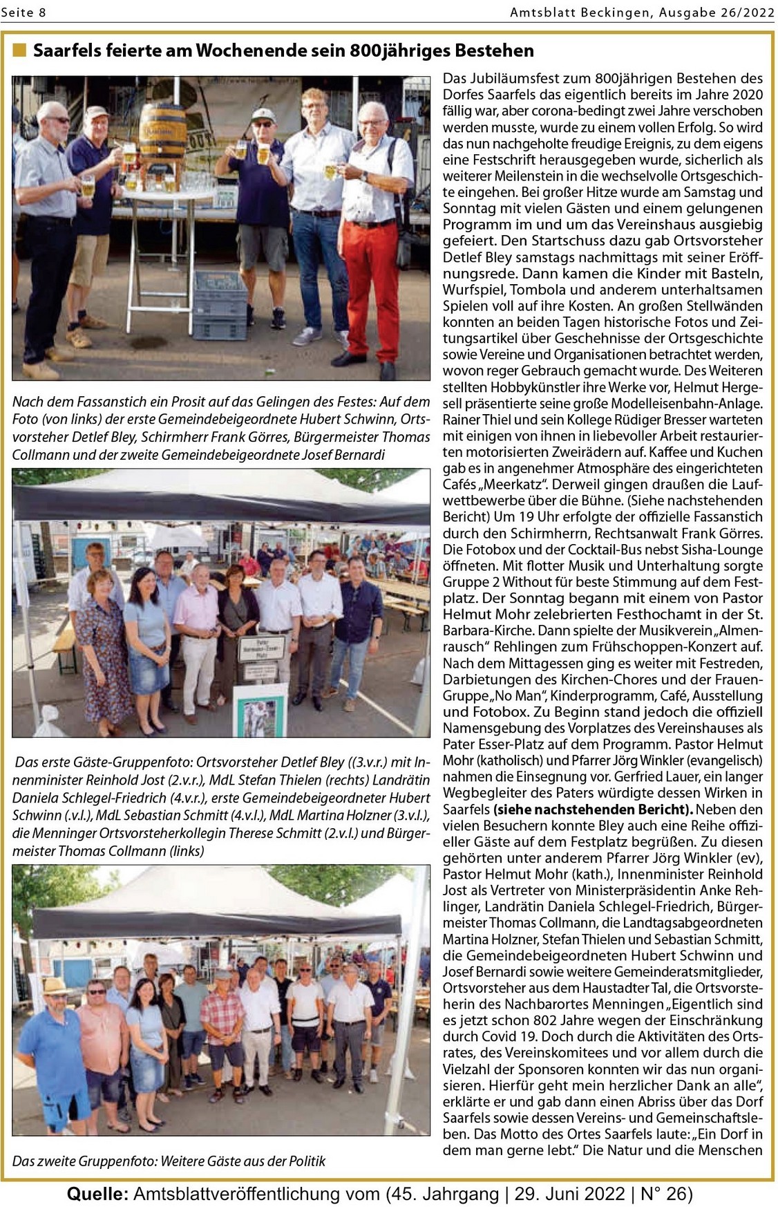 Quelle: Amtsblattveröffentlichung vom (45.Jahrgang / 20 Juli 2022 / Nr.29) |