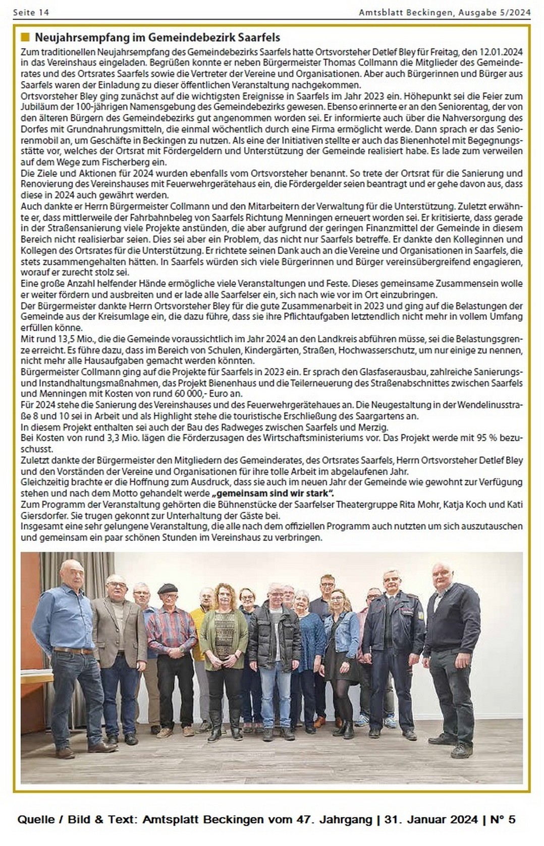 Amtsblatt Beckingen vom 47. Jahrgang | 28. Februar 2024 | N° 9